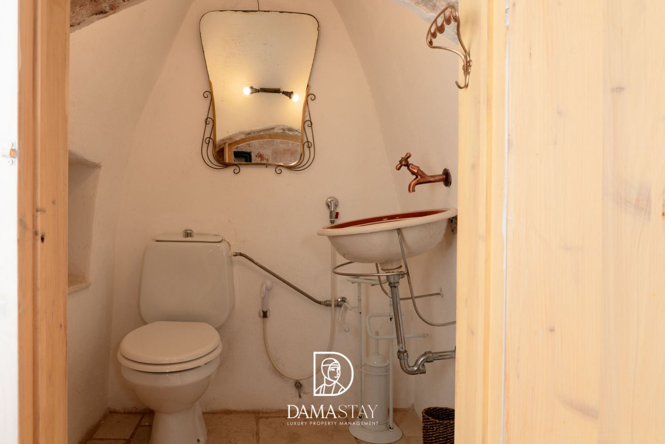 All’esterno è disponibile un bagno completo di doccia, perfetto per rinfrescarsi comodamente al rientro dal mare, riservato ad uso esclusivo degli ospiti del Trullino.