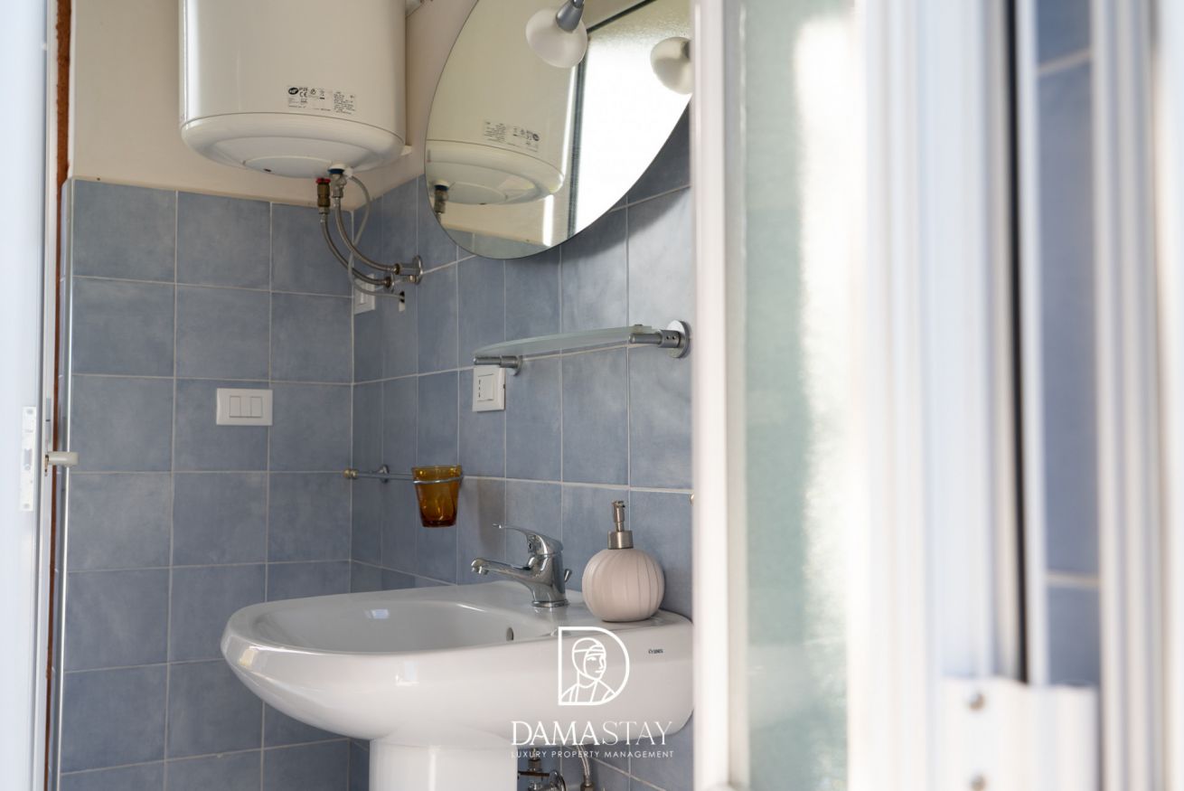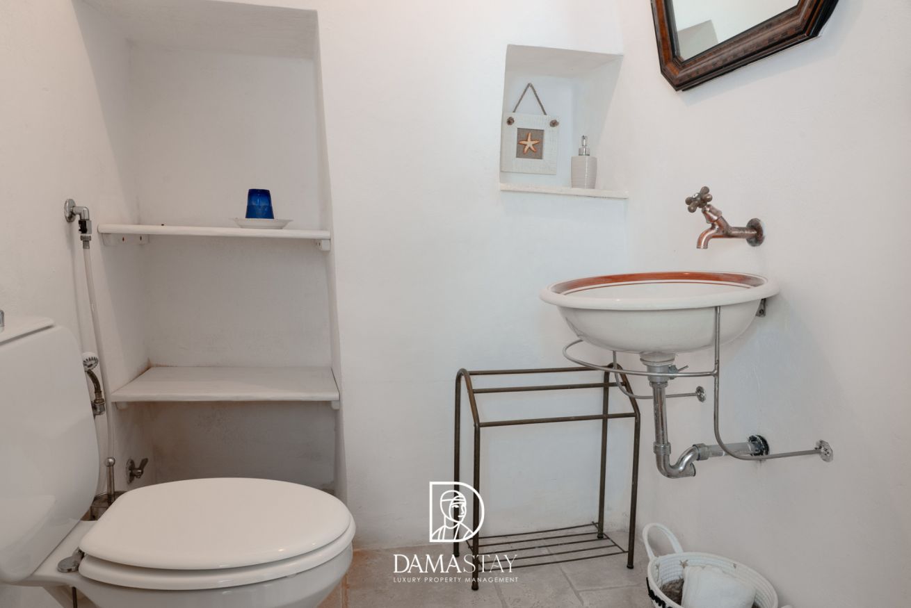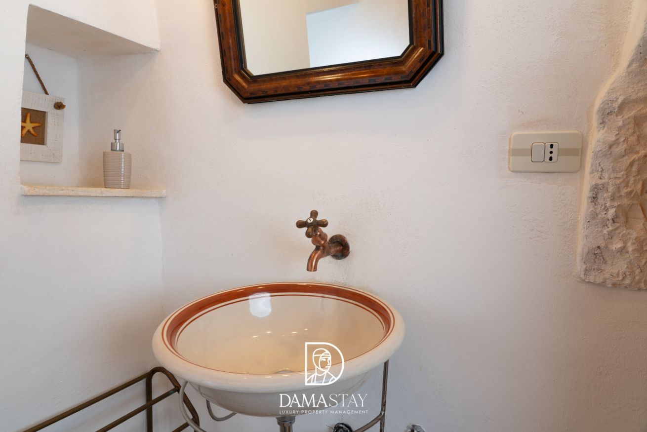 All’esterno è disponibile un bagno completo di doccia, perfetto per rinfrescarsi comodamente al rientro dal mare, riservato ad uso esclusivo degli ospiti del trullo grande.